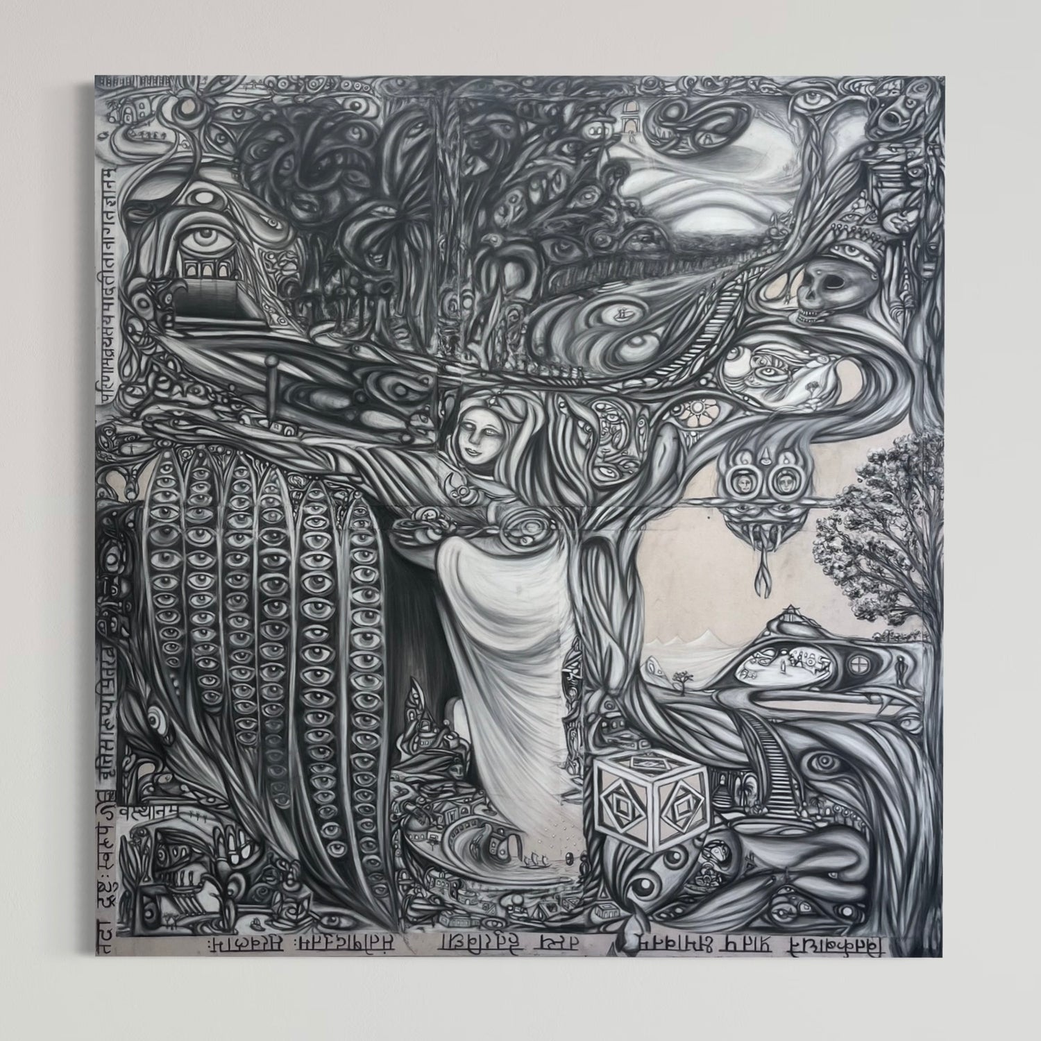 This artwork is the result of a process. An enquiry and exploration of the contents of my unconscious. The content of this artwork was drawn from a series of deep "active imagination" meditations, as termed by psychologist Carl Jung. It explores the function of imagination as a faculty of perception. As a medium through which to engage with the real reality underlying the shapes and forms of the visible world. It weaves together a cross-cultural understanding of archetypes and mythologies constituting our collective unconscious mind.