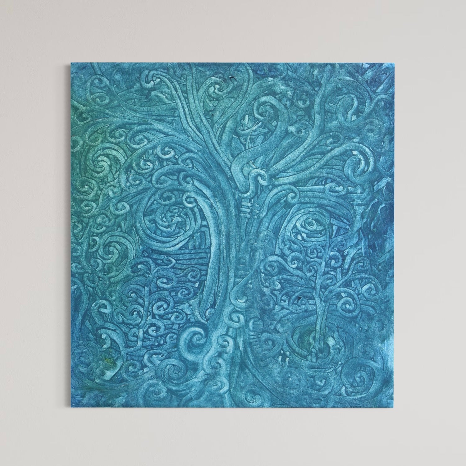 Exploring the art and science of water lead me to the work of Viktor Scahuberger. His understandings of water inspired the gestures that made this work. Water took prominence over the paint as the primary creative material. Attention focused on the water, allowing it to lead the way - the paint simply present to make visible the movement of the play. What you see is a water-dance suspended in time. What emerged is a tree - a symbol seen throughout global mythology.